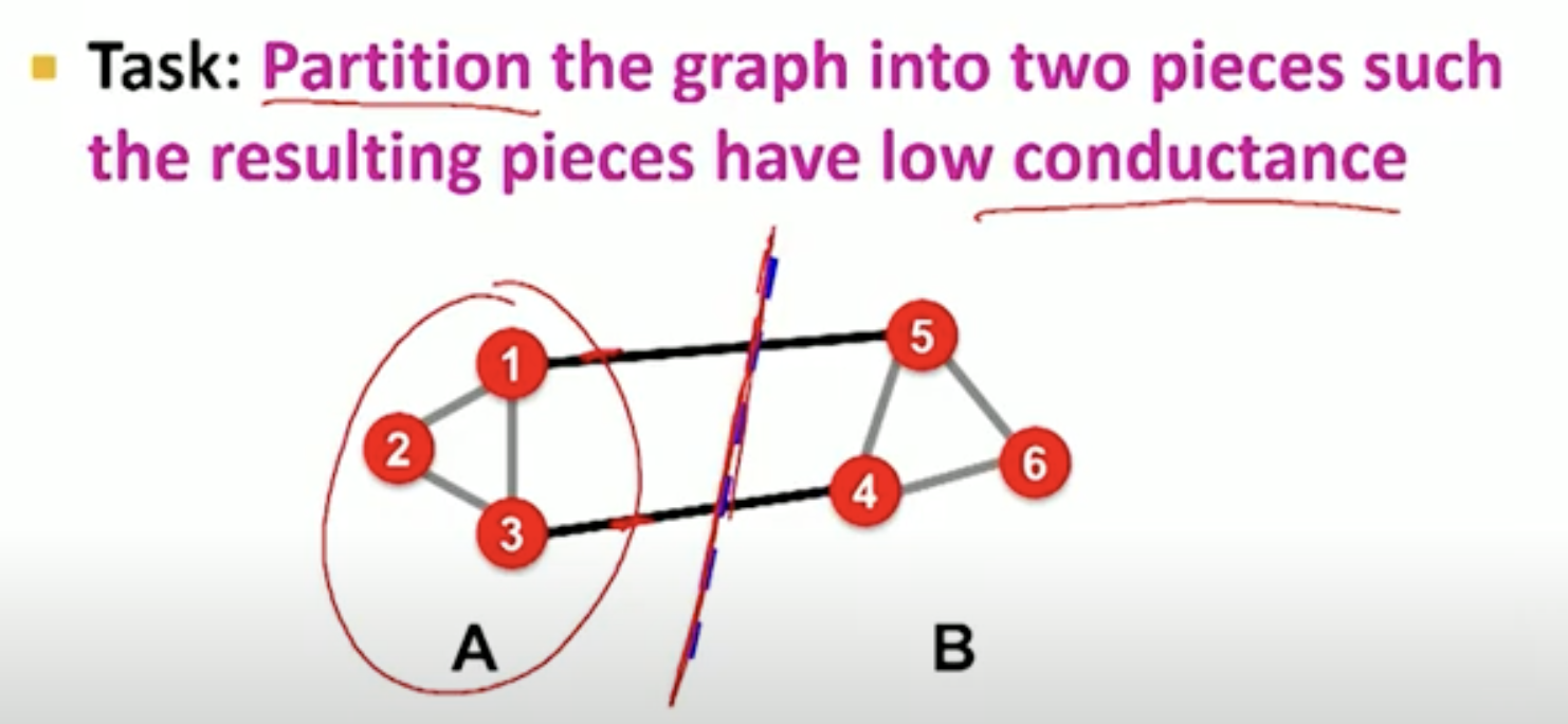 - we are trying to split the graph into 2 pieces (identify clusters)