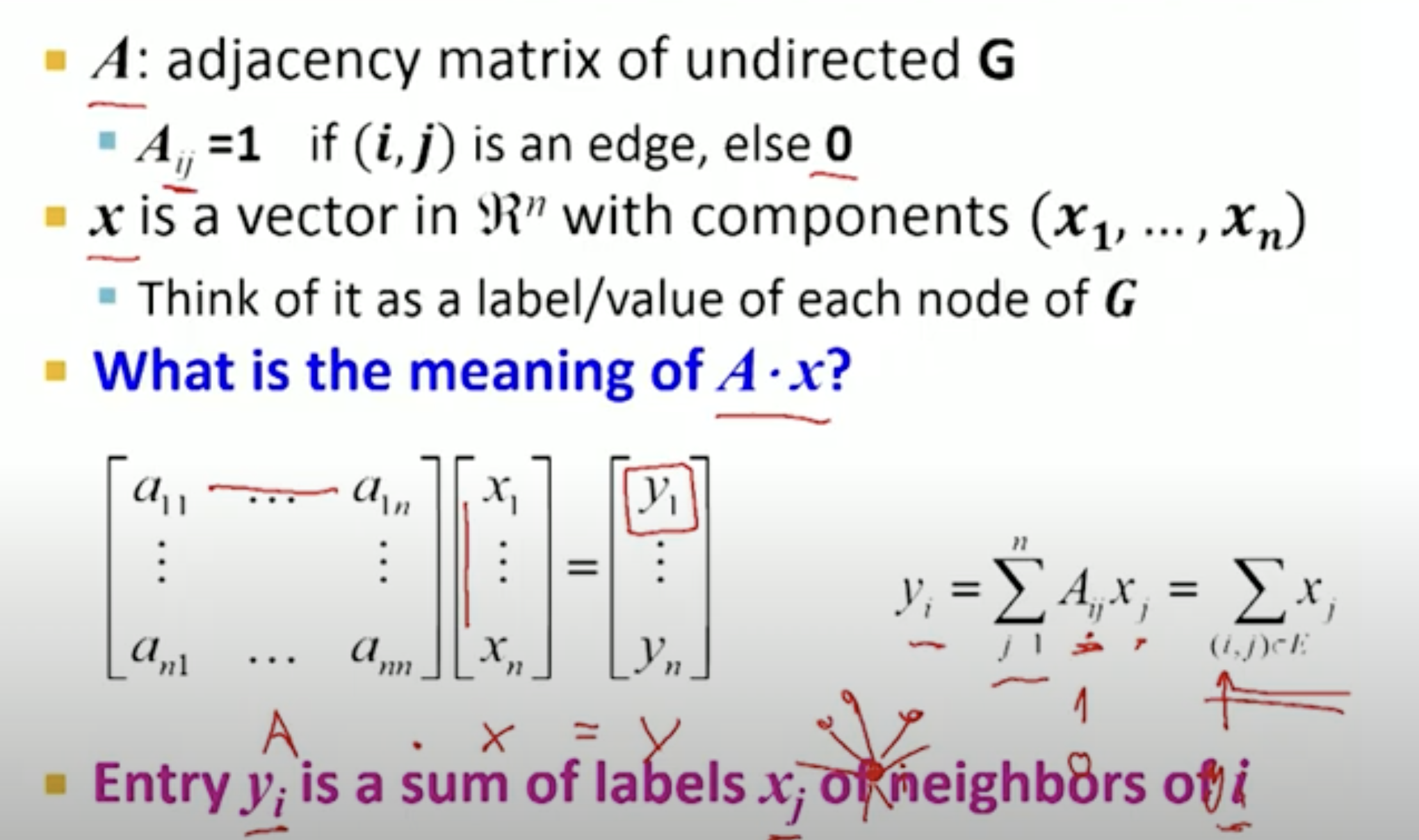 - it makes sense for it to be the sum of neighbours. cause non-neighbours are 0 in the adj matrix!