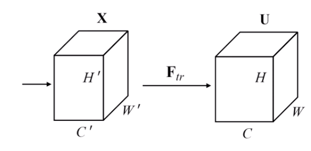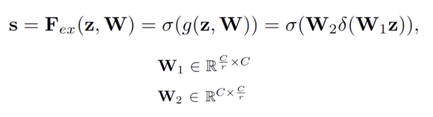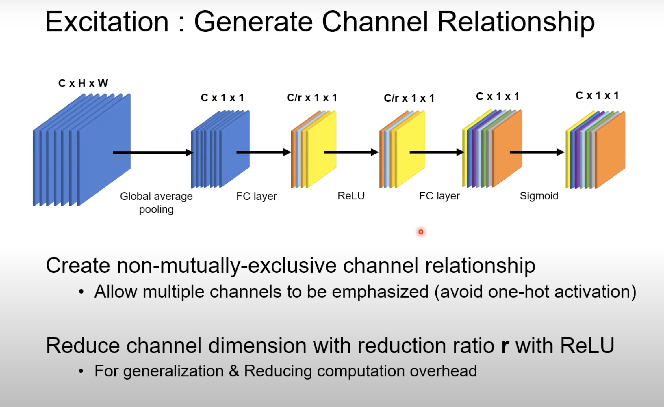 notice how the excitation layers shrinks the dimension from C to C/r (the reduction ratio)