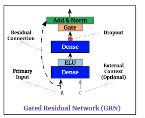- it uses GRN layers (Gated Residual network) to perform nonlinear operations